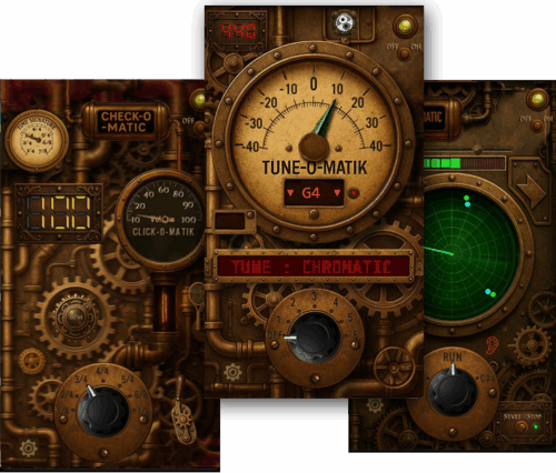 GIT-O-MATIK ist unser Gitarren-Multitool im Retro-Look. Metronom, smarter Tuner und ein Timing-„Radar“. Die Steampunk-UI ist mit Liebe gestaltet, authentisch und voller coolem Vibe. Bald auch für Linux und MacOS.